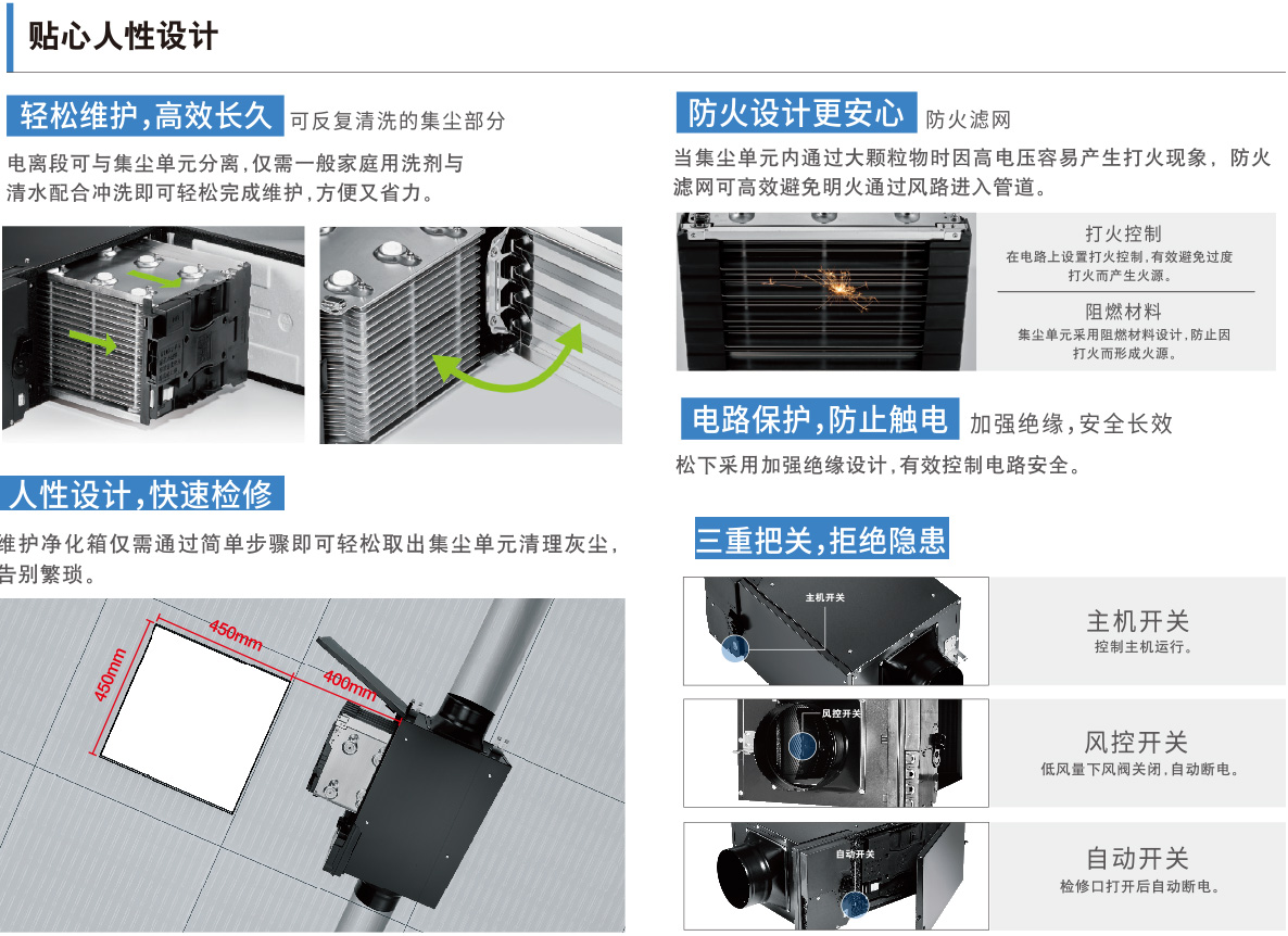 空氣凈化的第一道防線、三重安全開關(guān),阻燃,絕緣材料的高安全性、高凈化率、簡(jiǎn)單水洗,維護(hù)方便、臭氧含量遠(yuǎn)低于國(guó)標(biāo)IEC標(biāo)準(zhǔn)