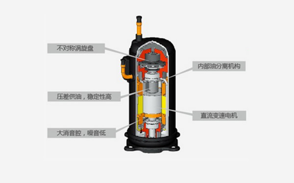 大容量的高壓腔渦旋壓縮機(jī)采用內(nèi)部油分離機(jī)構(gòu),通過內(nèi)部油霧分離器專利設(shè)計和內(nèi)部回油管設(shè)計,使壓縮機(jī)潤滑油大部分保存在壓縮機(jī)內(nèi),只有少量油被帶出壓縮機(jī),有效防止因多余的冷凍油在制冷循環(huán)中造成的能力下降,效率進(jìn)一步提高;采用防過壓縮技術(shù),有效的防止了冷凝壓力過高而造成的功耗增加問題,壓縮機(jī)運(yùn)轉(zhuǎn)更節(jié)能,同時使得制冷系統(tǒng)更加穩(wěn)定可靠。