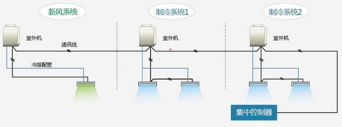 日立新風(fēng)系統(tǒng)與制冷系統(tǒng)可以同時接入一個中央空調(diào)控制系統(tǒng),無需單獨(dú)控制,使用靈活便利。