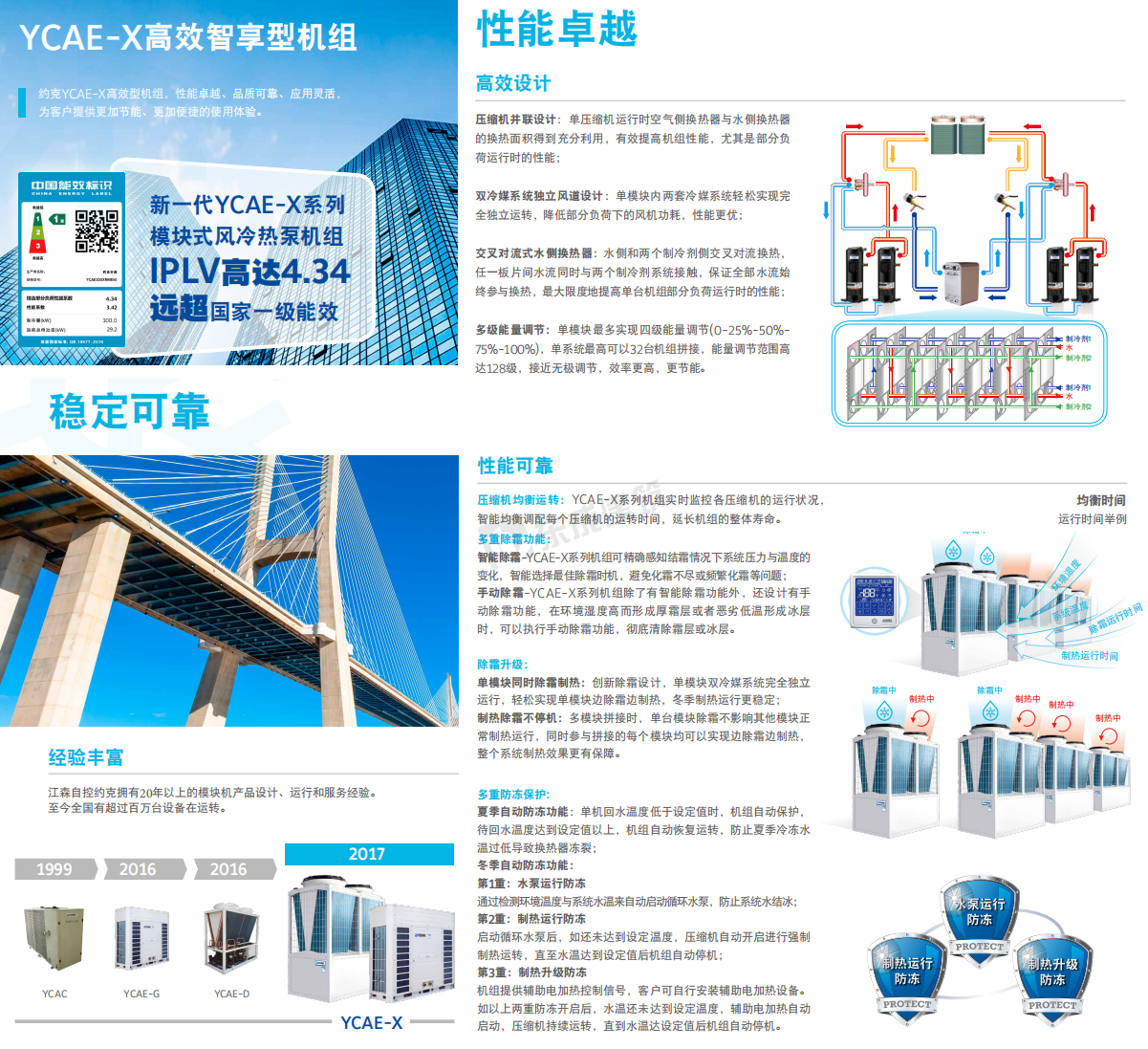 約克模塊式風(fēng)冷冷水/熱泵機(jī)組傳承YORK®多年模塊機(jī)設(shè)計(jì)、制造、運(yùn)行和服務(wù)經(jīng)驗(yàn),致力于打造約克YCAE-X高效型機(jī)組,性能卓越、穩(wěn)定可靠、智能控制、應(yīng)用靈活和低碳環(huán)保的機(jī)組, 為客戶提供更高效節(jié)能。X-Power系列以其超高效的性能引領(lǐng)模塊式風(fēng)冷冷水/熱泵機(jī)組市場。 |
