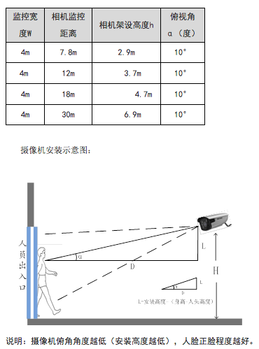攝像機(jī)安裝要求及鏡頭值關(guān)系如下: